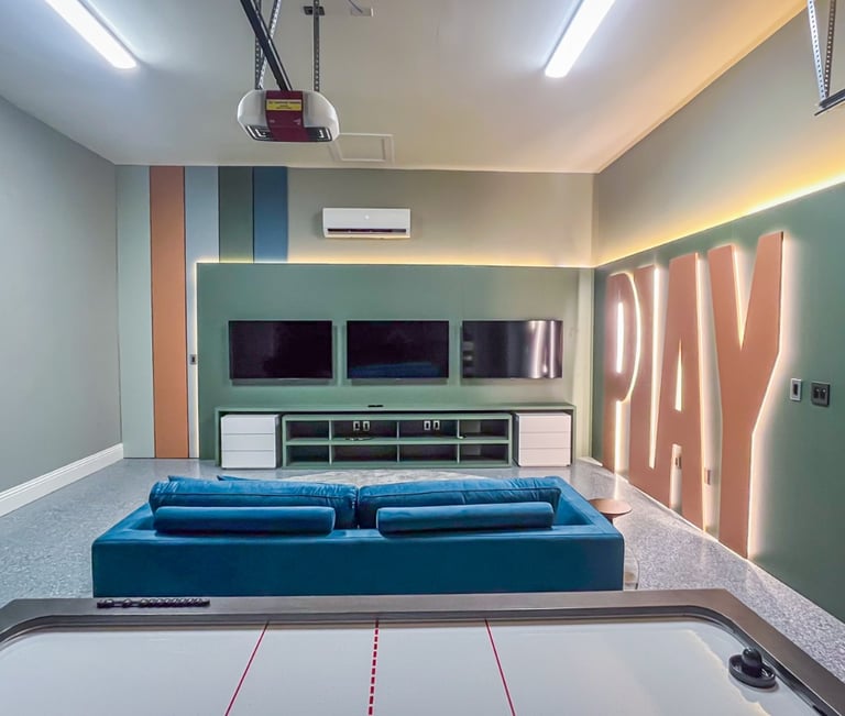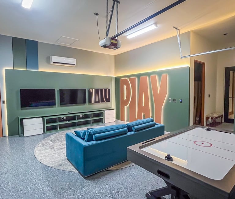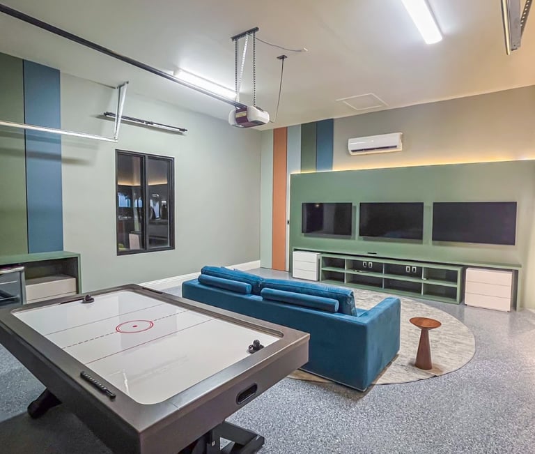 The custom-made luxury garage seamlessly blends elegance and functionality. With premium materials, strategic lighting, and state-of-the-art technology, every detail is meticulously planned to reflect the refined taste of its owners. Smart storage, climate control, and advanced security systems complete the space, creating an exclusive automotive sanctuary for the most discerning car enthusiasts.